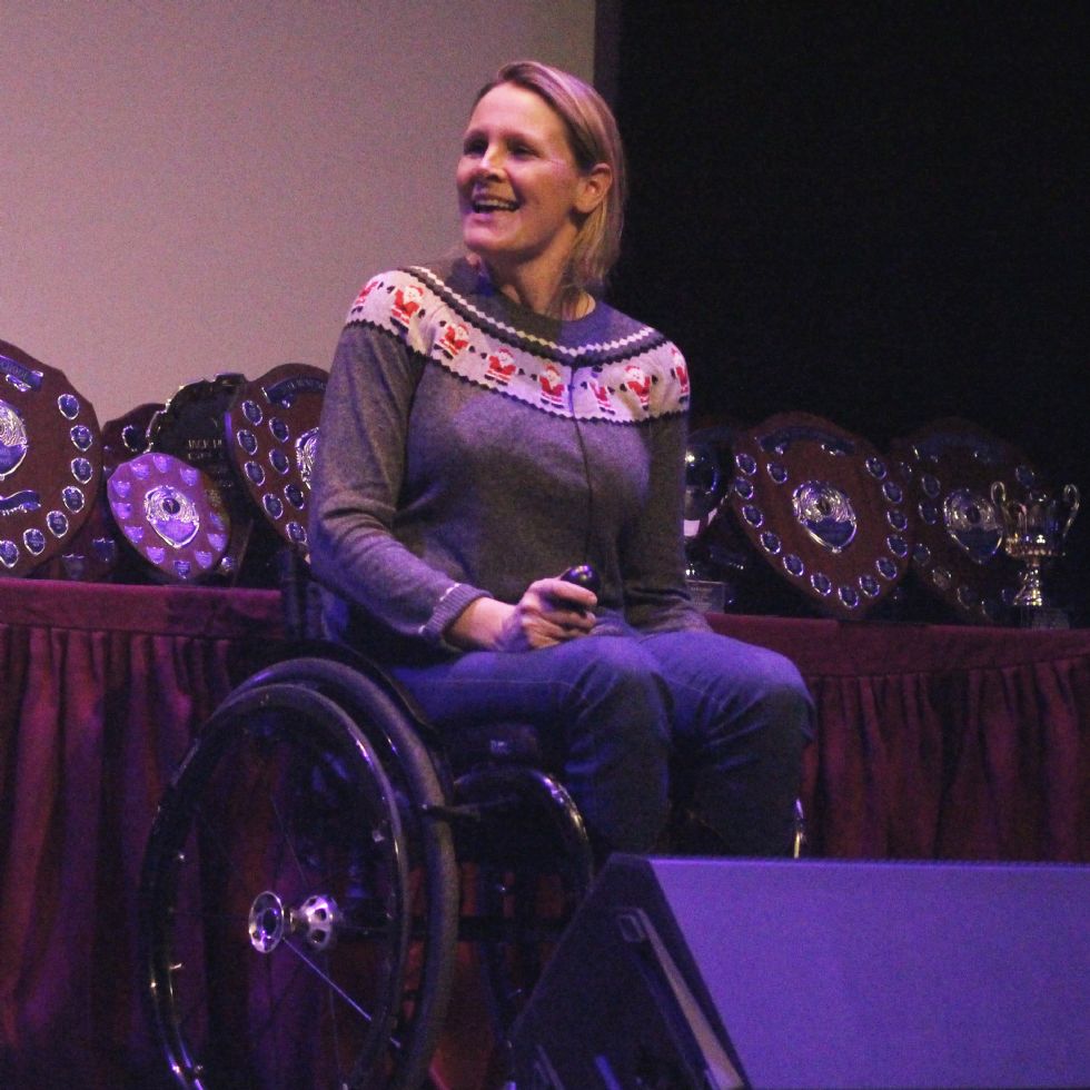 The special guest speaker was Claire Lomas, who presented awards and certificates to the GCSE and A-Level students as well as special prizes to those students who were best in their subject. Claire Lomas was working as a chiropractor and had reached the highest level in the sport of eventing when an accident left her paralysed from the chest down. Claire has since discovered skiing, set up a business, written a book and organised fundraising events. In 2012 Claire became worldwide news when she completed the London Marathon in a robotic suit. Although it took her 17 days to complete Claire raised £210k for Spinal Research.