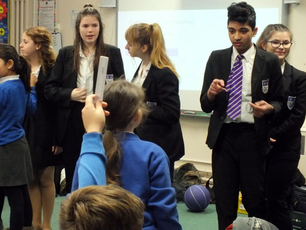 Year 9 students from Jack Hunt School teach Year 4 pupils French and Spanish.