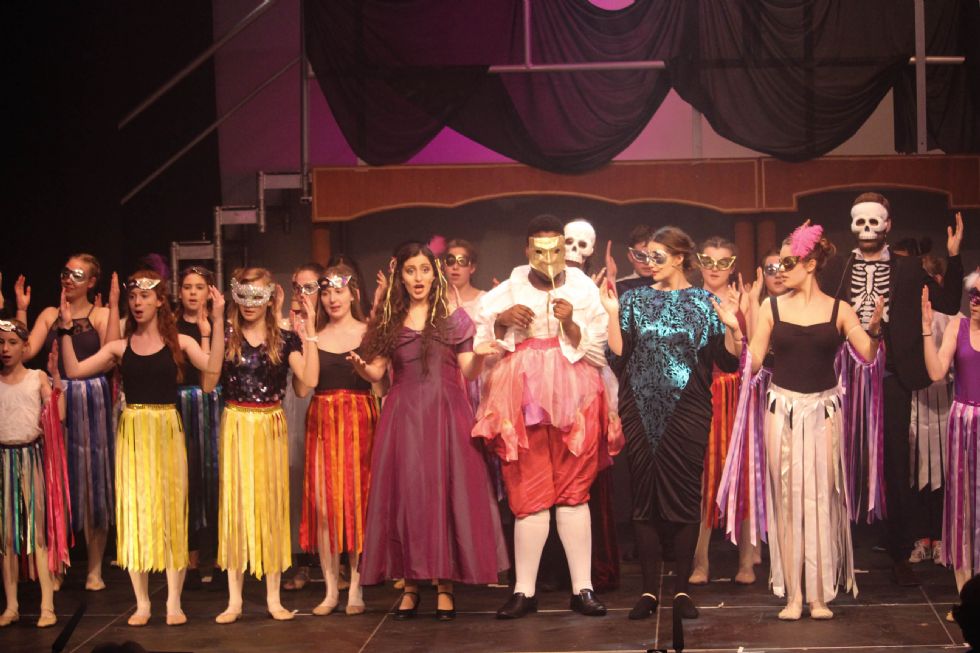 be taking part. We had to overcome the usual shortage of male volunteers but were delighted that three very busy members of staff agreed to take on crucial comic roles, involving some very complex singing numbers. We were very fortunate, too, that Geena Hird offered to take care of the choreography, particularly as she was able to work with many of her own gifted ballet students who were already cast members.