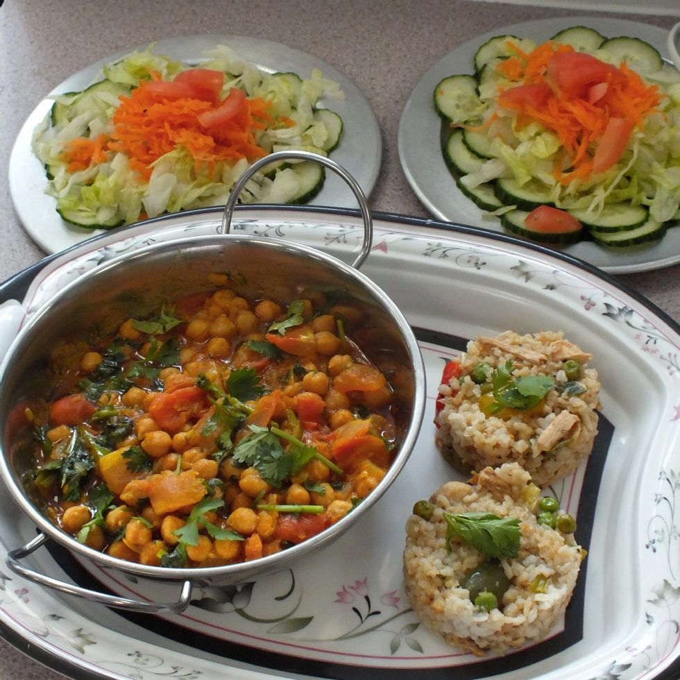 1st: Chicken Fried Rice, Chana Curry and Punjabi Salad