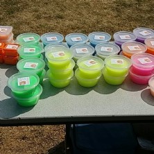 In a very short time I had lots of requests to make more and was also asked for different colours. I sold enough to buy ingredients to make more. The ingredients I use are glue, paint and borax (which is an activator to make the slime). I asked if I could sell this at my local primary school at their Christmas fete. This was a huge success as I made 40 tubs of varying sizes, which I sold in 30 minutes. The demand was so much higher than the amount I had produced, so I took orders from children to make and deliver the following week to them. The following summer I went back more prepared having made 100 which also sold out. I have also been to Edith Weston and Northborough primary schools which have all been successful.