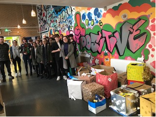 First, KMKR Tutor Group, Ms Keber, Mr Piper and I started at the Foyer, Peterborough, where we were greeted with big grins and looks of amazement at the sheer beauty of KMKR’s hamper. Next, we went on to The Peterborough Soup kitchen where we met John, a wonderful man who told us just a little bit about what the soup kitchen does and how it provides warm meals every single day. We were amazed that every single person involved with the charity are volunteers.