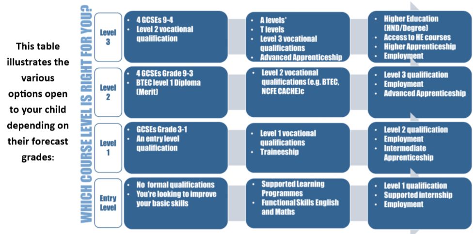 It is important that your child applies before school, college and training providers’ deadlines. As most of these deadlines are from December to February, your child will be applying with the grades their teachers have forecast them to achieve at the end of Year 11 (their ‘forecast grades’).