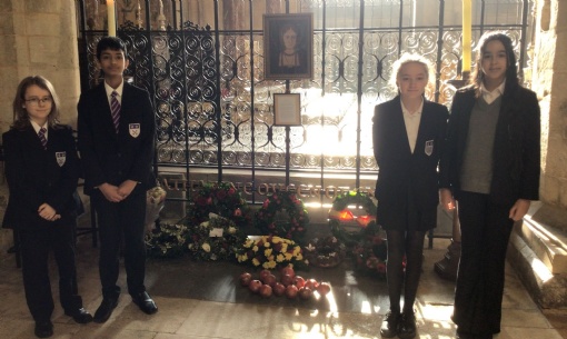 Four Year 7 students attended the Katharine of Aragon memorial service at Peterborough Cathedral on Friday. Students laid pomegranates on Queen Katharine's grave as part of the service, and joined the Spanish ambassador, Bishop, Dean of Peterborough Cathedral, Lord Lieutenant of Cambridgeshire, High Sheriff of Rutland, Lord Mayor and Lady Mayoress, and other dignitaries in the procession.
