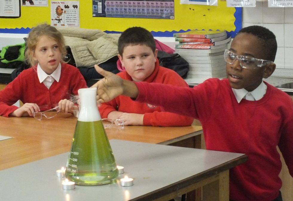 Last Wednesday afternoon, we welcomed 60 Year 4 pupils from Highlees Primary School who had come in as part of their ‘potions’ topic to find out more about working in a Science Lab and to have some fun carrying out some experiments.