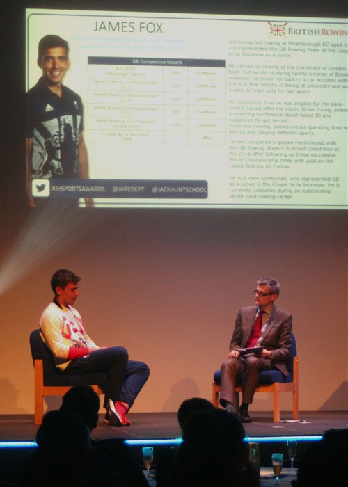 We had a very special guest, former Thorpe Primary and Jack Hunt School student and current Para Rowing Paralympics Gold Medallist James Fox. James was part of the mixed 4 para rowing team who won gold  at Rio 2016. James completed a golden Paralympiad with the GB Rowing Team LTA mixed coxed four at Rio 2016 after following up three successive World Championship titles with gold on the Lagoa Rodrigo de Freitas.