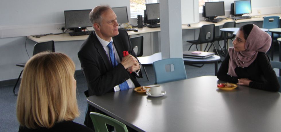 The conversation continued over lunch and afterwards sixth form students Kaynat Chaudhry, Balqisa Farah and Hadya Suge, took their visitor on a tour of the school. At the end of the visit, he thanked them for showing him around and proclaimed that he would love to see some applications from them for work experience in his office.