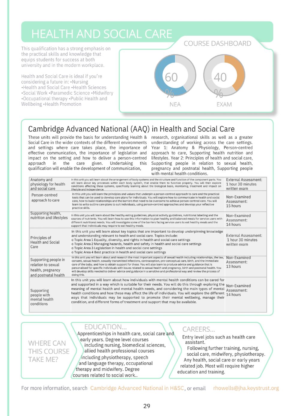 Over 1.5 million people work across over 350 different careers in the NHS. The workforce in social care is of a similar size. The care needs in this country are growing, making Health and Social Care a vital qualification for students to study.