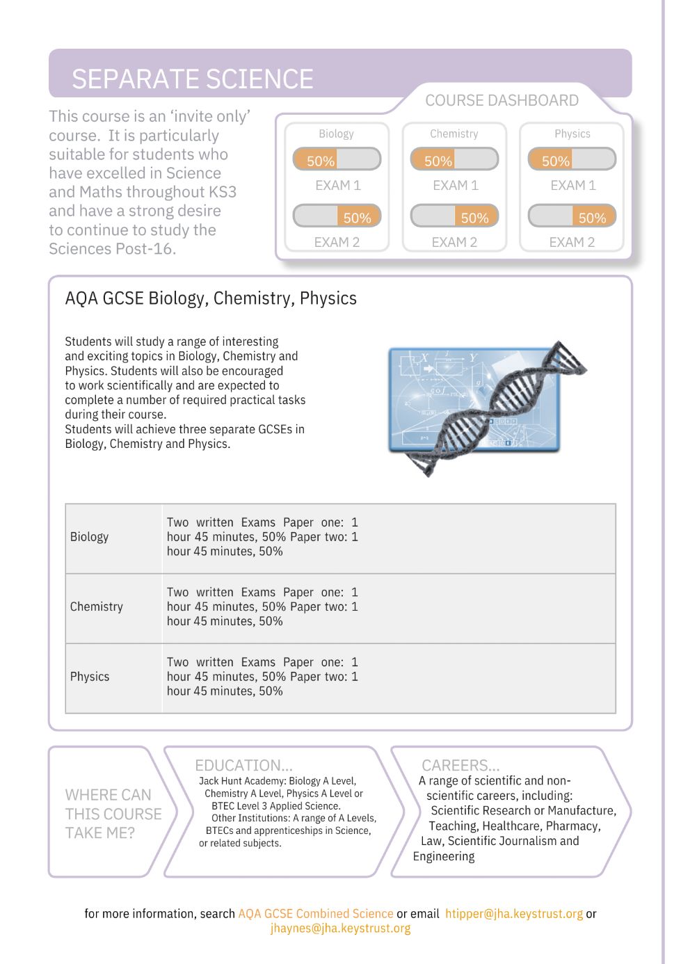 • During the first part of the year students will review, apply and extend their knowledge across topics introduced in year 7 & 8. From Easter students will start to explore the knowledge and skills needed to be successful in AQA GCSE Combined Science.